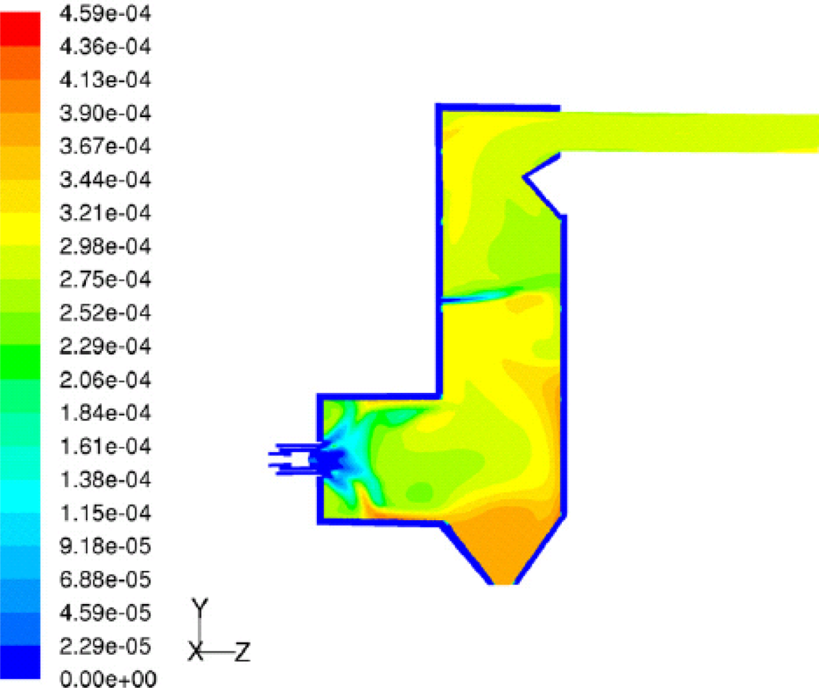 Figure 10 shows the biomass particle tracks in the coal-biomass combustion case.