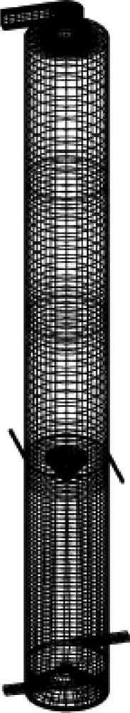 Figure 2 shows the geometry and surface mesh of the gasifier. The model provides detailed information on the gas composition and temperature at the outlet and allows different operating scenarios to be examined in an efficient manner. The initial calculations suggest that simulations to examine the effect of gasifier height and the steam flux in the upper inlets can be beneficial in process optimization. The simulation of sawdust gasification in one case gave an exit composition on a dry basis of 10% CO, 12% CO2, 20% H2 and 1.2% CH4, compared with 16% CO, 14% CO2, 10% H2, 1% CH4 measured in the experiments, the hydrogen generation was too high. The model with further validation against detailed experimental data, will aid with the design process of such gasifiers.