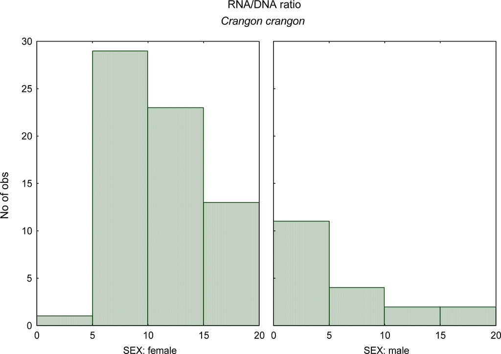 2.1. Organism level indices: RNA:DNA ratio, DNA:dry weight and RNA:protein