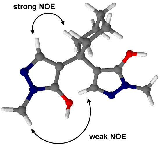 It should be noted that according to NMR data in DMSO-d6 solution, we presume a rather unsymmetrical conformation as outlined in Scheme 2. Consistent with this suggestion, we achieved no intramolecular cyclization to the corresponding pyrano[2,3-c:6,5-c']dipyrazole upon treatment with conc. sulfuric acid or polyphosphoric acid, that would be expected if the hydroxy groups were spatially close.