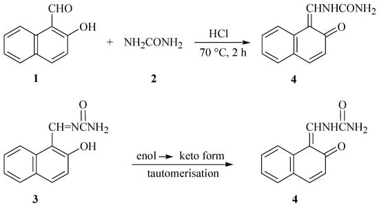 It may be rationalized that 4 is the tautomer of 3 that resulted from dehydration condensation reaction of 2-hydroxy-1-naphthaldehyde and urea.