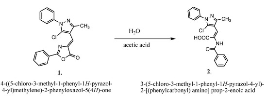 Synthesis of 2-benzamido-3-(5-chloro-3-methyl-1-phenyl-1H-pyrazol-4-yl) acrylic acid (2)