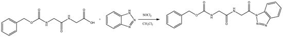 Benzyl {2-[(2-(1H-Benzo[d][1,2,3]triazol-1-yl)-2-oxoethyl)amino]-2-oxoethyl}carbamate was synthesized from the reaction of 2-{2-[((benzyloxy)carbonyl)amino]acetamido}acetic acid and benzotriazole using the Katritzky method (Scheme 1).