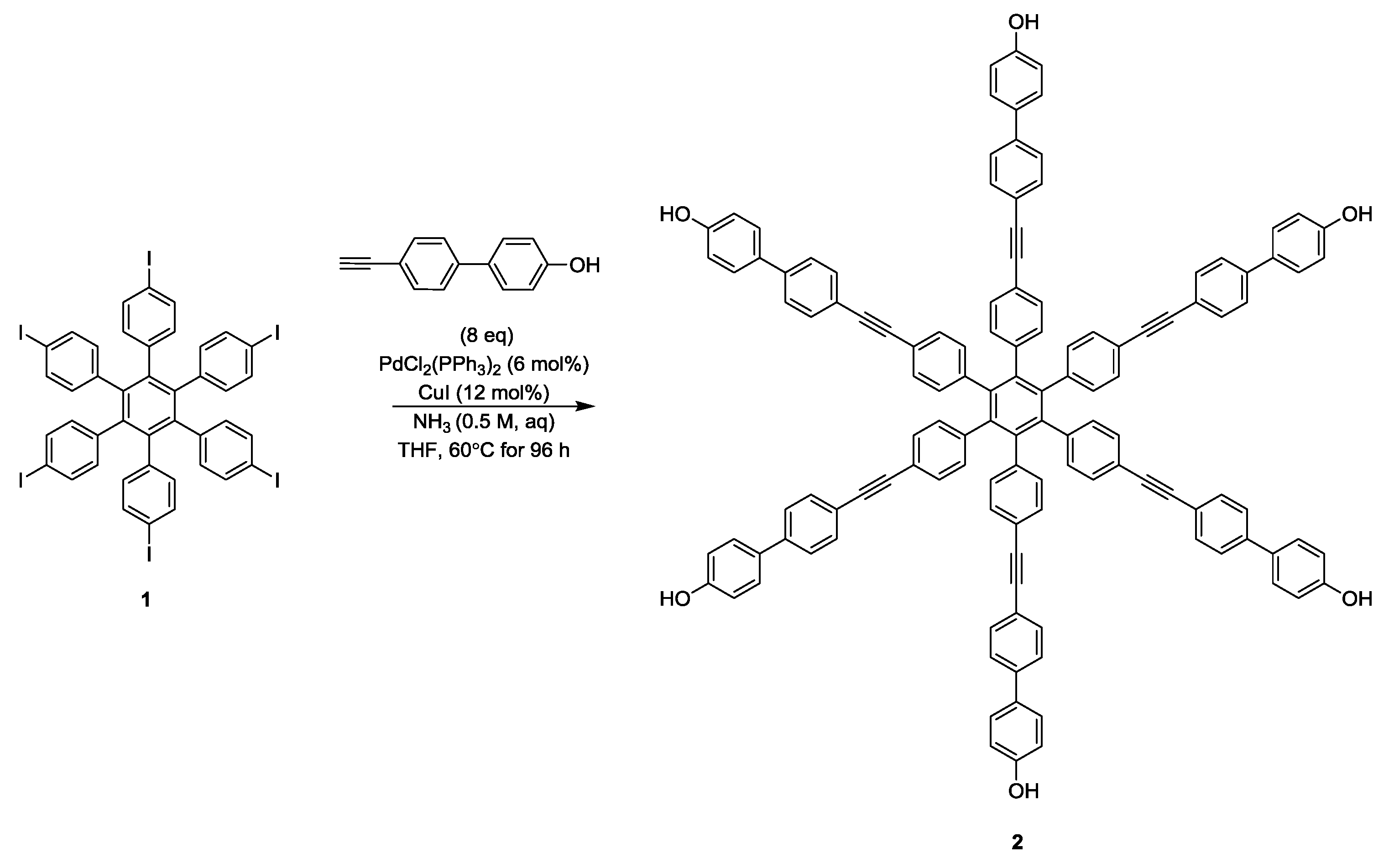 Hexakis{4-[(4′-hydroxybiphenyl-4-yl)ethynyl]phenyl}benzene (2)