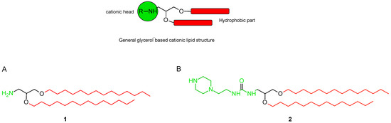 The pioneering work carried out by Felgner et al. in 1987 [6] demonstrated how a synthetic glycerol-based cationic lipid (DOTMA) was able to interact with DNA and impart cellular uptake, leading to the expected lipid-DNA complex fusion with the plasma membrane. Since then, a wide number of cationic lipids has been reported and tested as potential non-viral carriers [7].