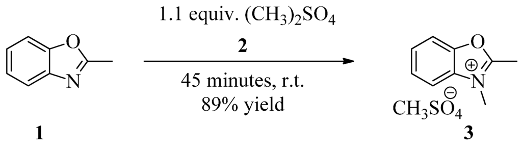 2.2. Experimental Procedure for the Preparation of 2,3-Dimethylbenzoxazolium Methosulfate