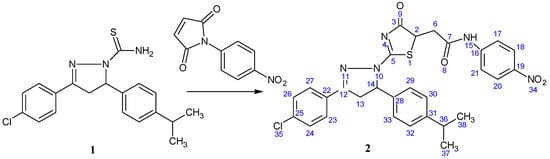 The synthesis and crystal structure of the starting material, 3-(4-chlorophenyl)-5-[4-(propan-2-yl)phenyl]-4,5-dihydro-1H-pyrazole-1-carbothioamide (1) was described in our earlier work [,,].
