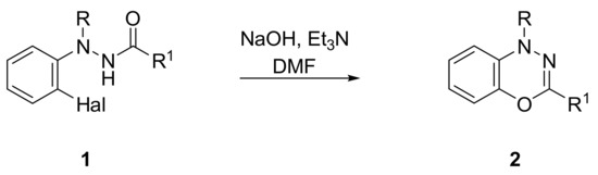 A classical route to benzo-fused 1,3,4-oxadiazines involves the intramolecular cyclisation of N′-(2-halophenyl)benzohydrazides first reported by Elliot and Gibson (Scheme 1) [8,9].