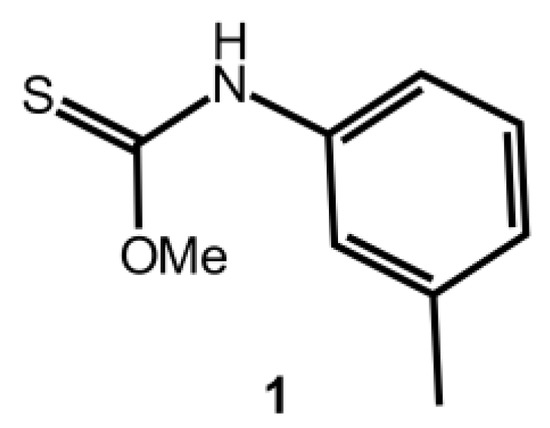 - Ho, S.Y.; Kuan, F.S.; Tiekink, E.R.T. (E)-O-Methyl N-(4-methylphenyl)thiocarbamate. Acta Crystallogr. E 2007, 63, o1723–o1724. [Google Scholar] [CrossRef]