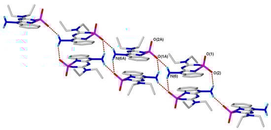 The crystal structure of 6 shows linear chain packing, formed by hydrogen bonding between the exocyclic amino groups and sulfonyl oxygen atoms of adjacent molecules (Figure 2).