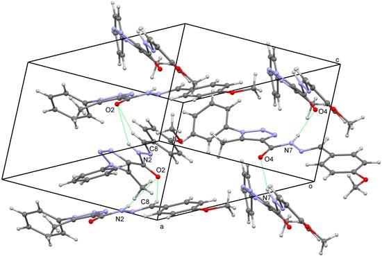 In the crystal structure, the second type of molecule forms chains parallel to the c-axis through N–H...O interactions with geometry: N7–H7A…O4a = 159.2° (a = x, −y + 2, z + ½) and N…O = 3.289(6) Å (Figure 2). N–H…O contacts involving the first type of molecule are weaker (with geometry N2–H2…O2b = 141.6°, N2…O2 = 3.522(6) Å, b = x, −y + 1, z + ½) but are complemented by C–H…O contacts (with geometry C8–H8…O2b = 152.0°, C8…O2 = 3.289(6) Å) also forming chains parallel to the c-axis.