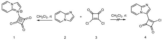 The reaction of imidazo[1,2-a]pyridine (2) with squaric acid dichloride (3) afforded only one product, which was identified as the ylide 1. This reaction course is in accordance with the formation of ylides from imidazole or 1-methylimidazole and squaric acid dichloride [].
