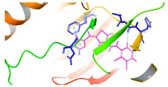 Figure 1. Docking pose of the title compound against cyclin dependent kinase 2 (CDK2).