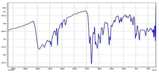 The IR spectrum for N′-(3-chlorobenzoyl)isonicotinohydrazide (Figure 2) showed a band at 1640 cm−1, representing carbonyl stretching. This band shifted to 1648 cm−1 in the complex (Figure 3), indicating that coordination to iron occurred with slight strengthening of the C=O bond. The υ(Fe-O) can be seen at 545 cm−1 and the υ (Fe-N) can be seen at 491 cm−1 [13,18].
