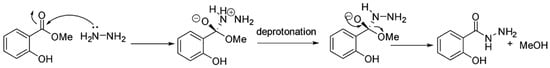 Reaction mechanism of synthesis of salicylhydrazide (2).