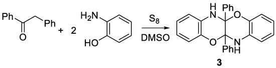 - Nguyen, T.B.; Retailleau, P. Sulfur-catalyzed stereo and regioselective synthesis of heteropropellanes via oxidative condensation of cyclohexanones with 2-aminophenols. Adv. Synth. Catal. 2019, 361, 3588–3592. [Google Scholar] [CrossRef]