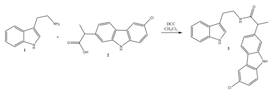 Synthesis of N-(2-(1H-Indol-3-yl)ethyl)-2-(6-chloro-9H-carbazol-2-yl)propanamide 3