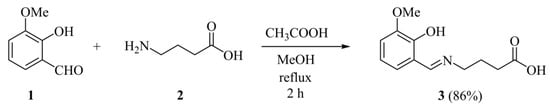 Synthesis of (E)-4-((2-hydroxy-3-methoxybenzylidene)amino)butanoic acid (3).