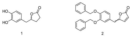 The synthetic precursor of the 5-(3′,4′-dihydroxyphenyl)-γ-valerolactone (1) is the γ-alkylidenebutenolide (2) featured by a α,β-unsaturated γ-lactone core which bears a substituent at the gamma position (Figure 1).