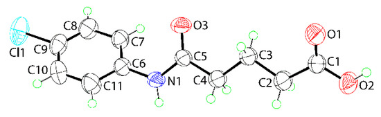 - Sirajuddin, M.; Hanifa, B.; Ullah, S.; Lo, K.M.; Tiekink, E.R.T. Crystal structure of 4-[(3,5-dichlorophenyl)carbamoyl]butanoic acid, C11H11Cl2NO3. Z. Kristallogr. New Cryst. Struct. 2020, 235, 1495–1497. [Google Scholar] [CrossRef]