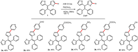 Synthesis of monoarylated diphenyldithienylethenes 2a–f.