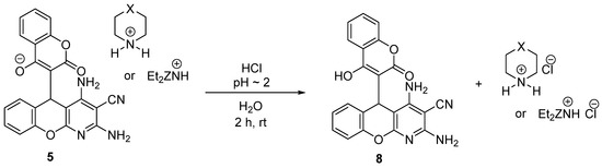 2.3. Acidification of Ammonium Salts of 2,4-Diamino-5-(4-Hydroxy-2-oxo-2H-chromen-3-yl)-5H-chromeno[2,3-b]pyridine-3-carbonitrile 5