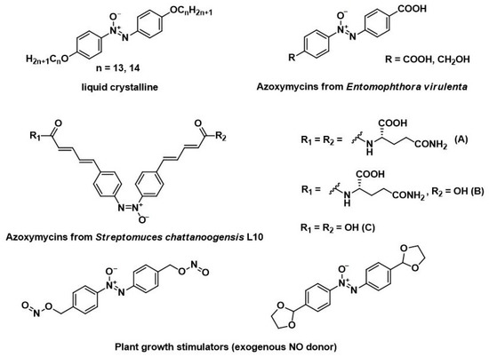 - Wibowo, M.; Ding, L. Chemistry and biology of natural azoxy compounds. J. Nat. Prod. 2020, 83, 3482–3491. [Google Scholar] [CrossRef] [PubMed]