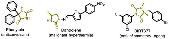 - Cho, S.H.; Kim, S.-H.; Shin, D. Recent applications of hydantoin and thiohydantoin in medicinal chemistry. Eur. J. Med. Chem. 2019, 164, 517–545. [Google Scholar] [CrossRef] [PubMed]