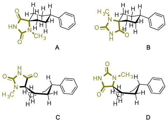 - Czopek, A.; Byrtus, H.; Zagórska, A.; Siwek, A.; Kazek, G.; Bednarski, M.; Sapa, J.; Pawłowski, M. Design, synthesis, anticonvulsant, and antiarrhythmic properties of novel N-Mannich base and amide derivatives of β-tetralinohydantoin. Pharmacol. Rep. 2016, 68, 886–893. [Google Scholar] [CrossRef]
