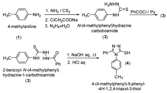 Synthetic route to 4-(4-methylphenyl)-5-phenyl-4H-1,2,4-triazol-3-thiol (4).