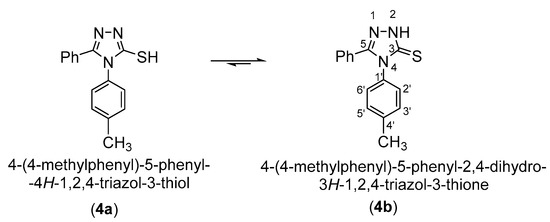 3.1. NMR Characterization of 4-(4-Methylphenyl)-5-phenyl-4H-1,2,4-triazol-3-thione (4)