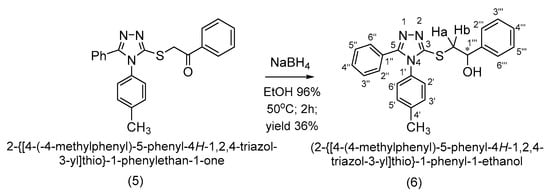 3.3. Synthesis of 2-{[4-(4-Methylphenyl)-5-phenyl-4H-1,2,4-triazol-3-yl]thio}-1-phenyl-1-ethanol (6)