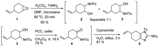 4.2. Tosyl-6-vinyl-4,5,6,7-tetrahydro-1 H-benzo[d]imidazole-2-amine (5)