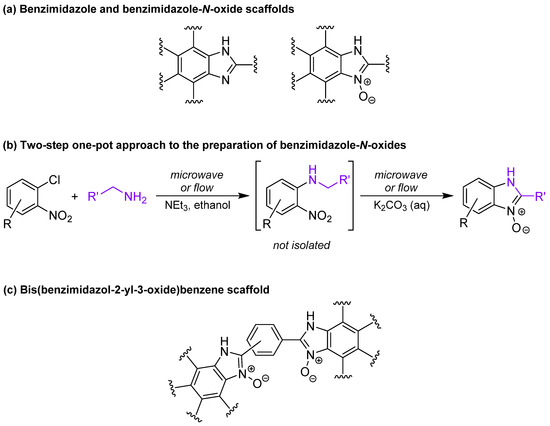 - Politano, F.; Buján, E.I.; Leadbeater, N.E. Preparation of benzimidazole N-oxides by a two-step continuous flow process. Chem. Heterocycl. Compd. 2016, 52, 952–957. [Google Scholar] [CrossRef]