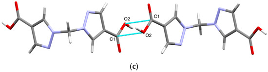 Intermolecular interactions in the crystal structure of H2bpmdc: (a) short contacts CH···N and CH···O; (b) CH–π interactions; (c) carbonyl–carbonyl interactions.