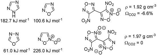 Enthalpies of formation of various azoles and representative furoxan-based HEMs.