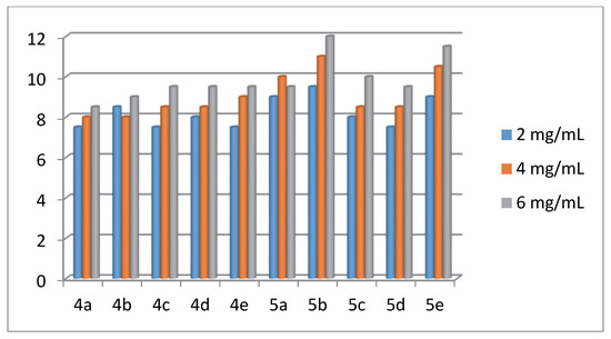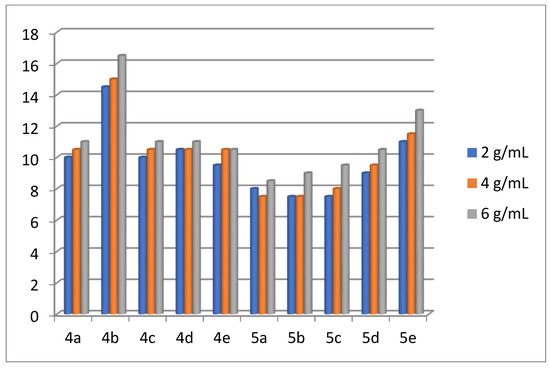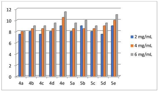 2.2. Antibacterial Activity of the Products 4(a-e) and 5(a-e)
