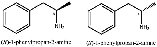 Discovered in 1910 by Barger and Dale, racemic α-methylphenethylamine (amphetamine) has transformed from a medicine that was freely available without the need of a prescription as a panacea for a broad range of disorders into a highly restricted and controlled medicine with therapeutic applications restricted to attention deficit hyperactivity disorder (ADHD) and narcolepsy (a sleep disorder) [1]. Amphetamine exerts its specific peripheral and central stimulant behavioral effects via the sustained elevation of extracellular concentrations of dopamine, serotonin, and norepinephrine [2]. Owing to a single chiral center, amphetamine exists in two optically active forms: d- (or R) and l- (or S) (d- for Dextro and l- for Levo-) (Figure 1), as more potent is d- or R-enantiomer.