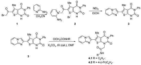 General procedure for synthesis of 2-(6-imidazo[1,2-a]pyridin-2-yl-5-methyl-2,4-dioxo-3-phenyl-3,4-dihydrothieno[2,3-d]pyrimidin-1(2H)-yl)-N-arylacetamides 4.1, 4.2