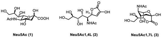 - Rota, P.; La Rocca, P.; Allevi, P.; Pappone, C.; Anastasia, L. Intramolecular lactones of sialic acids. Int. J. Mol. Sci. 2020, 21, 8098. [Google Scholar] [CrossRef] [PubMed]