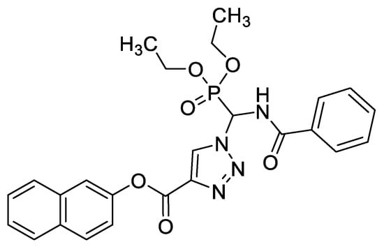 - Fall, S.A.K.; Hajib, S.; Karai, O.; Boukhssas, S.; Aouine, Y.; Akhazzane, M.; Labriti, B.; Faraj, H.; Alami, A. Naphthalen-2-yl 1-(benzamido(diethoxyphosphoryl)methyl)-1H-1,2,3-triazole-4-carboxylate. Molbank 2021, 2021, M1285. [Google Scholar] [CrossRef]