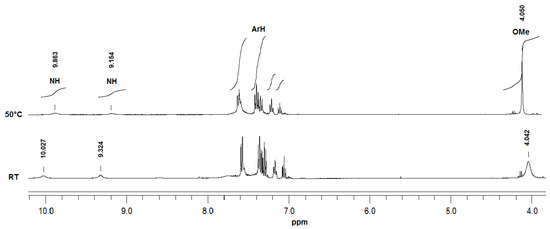 1H NMR spectra (400 MHz, acetone-d6) of compound 1 at RT and 50 °C.