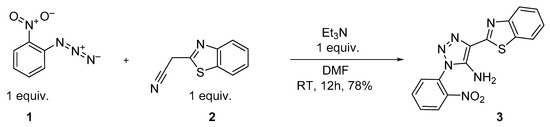 Synthesis of 4-(benzo[d]thiazol-2-yl)-1-(2-nitrophenyl)-1H-1,2,3-triazol-5-amine 3.