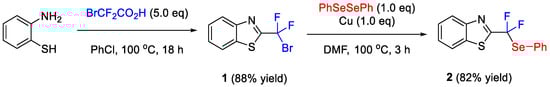 In conclusion, 2-[difluoro(phenylselenyl)methyl]benzo-1,3-thiazole was efficiently synthesized from 2-aminobenzenethiol in two steps and characterized by high-resolution mass spectrometry and NMR. The further application of the product is being explored in the laboratory.