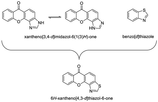 Many compounds based on the tricyclic planar chromophore framework, fully or partially consisting of anthraquinone [1], xanthone [2], or acridine [3,4], show interesting cytostatic and antitumor properties. In addition, benzothiazole moiety is present in various natural or synthetic compounds possessing beneficial biological activities [5,6,7] such as anticancer [8], anti-viral [9], etc. (Figure 1).