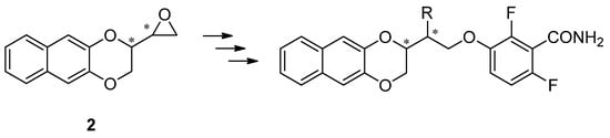 While developing novel antimicrobials, we recently obtained promising compounds as FtsZ inhibitors [8] with a naphthodioxane benzamide structure (Figure 1). Since these derivatives are characterized by an ethylenoxy linker, which could be additionally derivatized through the insertion of specific groups, we decided to apply the Corey–Chaykovsky reaction to achieve a common epoxydic intermediate (2). Compound 2 could be easily further converted into the desired compounds by ring opening (Figure 1), thus obtaining a sub-family of compounds with interesting and exploitable features.
