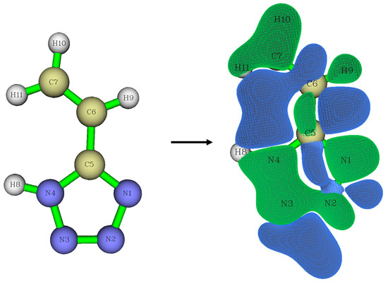 For theoretical calculations, the potential energy surface near the dihedral angle N4-C5-C6-C7 was scanned (the molecular model of vinyltetrazole with atomic numbering is shown in