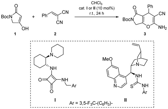 Organocatalysts I [22], II [23] and tetramic acid, tert-butyl 4-hydroxy-2-oxo-2,5-dihydro-1H-pyrrole-1-carboxylate (1) [21], were prepared following the literature procedures.