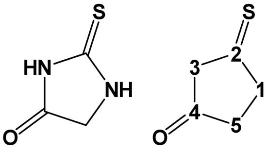- Takahashi, A.; Matsuoka, H.; Ozawa, Y.; Uda, Y. Antimutagenic Properties of 3,5-Disubstituted 2-Thiohydantoins. J. Agric. Food Chem. 1998, 46, 5037–5042. [Google Scholar] [CrossRef]