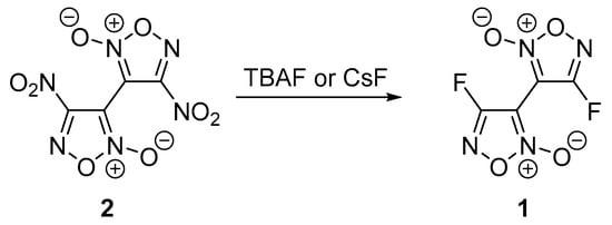 Obruchnikova NV, Rakitin OA. 4,4′-Difluoro-[3,3′-bi(1,2,5-oxadiazole)] 2,2′-Dioxide. Molbank. 2023; 2023(1):M1596. https://doi.org/10.3390/M1596